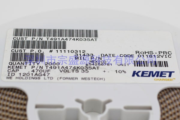 產(chǎn)品名稱:基美鉭電容 3216 35V 0.47UF A型 T491A474K035AT