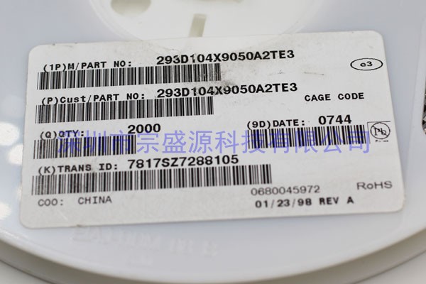 產(chǎn)品名稱:VISHAY鉭電容 3216 50V 0.1UF 293D104X9050A2TE3
