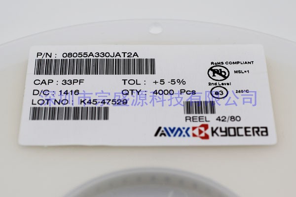 產(chǎn)品名稱:AVX陶瓷電容 0805 50V 33PF 08055A330JAT2A