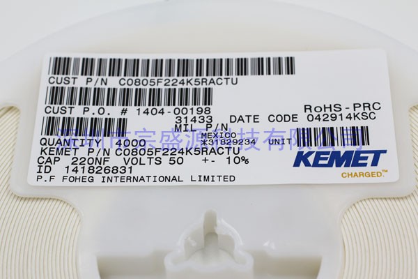 產(chǎn)品名稱:KEMET鉭電容 0805 50V 0.22UF C0805F224K5RACTU