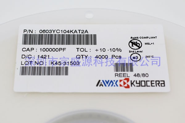 產(chǎn)品名稱:AVX陶瓷電容 0603 16V 0.1UF 0603YC104KAT2A