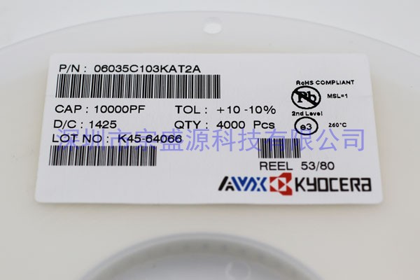 產(chǎn)品名稱:AVX陶瓷電容 0603 50V 0.01UF 06035C103KAT2A