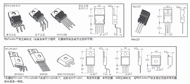三極管和二極管,其典型的封裝形式是THM(Through-HoleMount,引腳插入式)插腳型封裝,即使是在SMD(SurfacdMountingDevice,表面貼裝元件)大行其道的今天也是如此,因?yàn)閷?shí)踐證明這種形式的封裝既可靠又利于獨(dú)立散熱片的安裝和固定。晶體管THM封裝以TO(TransistorOutline,晶體管封裝)為主要形式,而SMD形式的,以有引腳的為主要形式,IR(InternationalRectifier,國(guó)際整流器)開發(fā)的DirectFET封裝則是其中的特例,屬于無(wú)引腳而只有焊接端子的形式,這種形式在小功率SMD器件中的應(yīng)用最為廣泛。