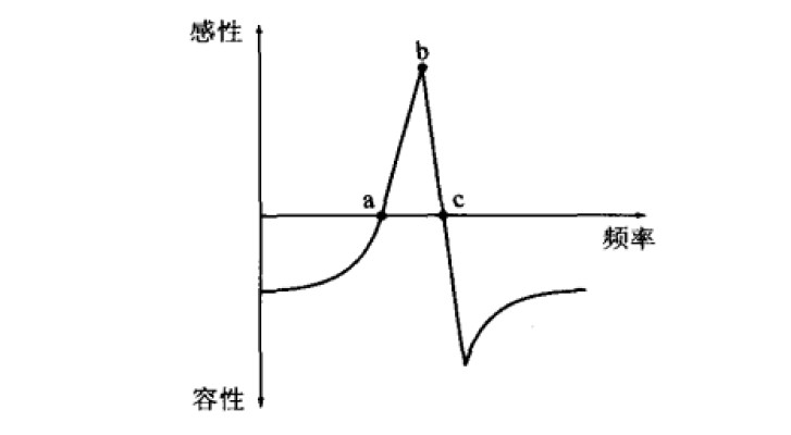 如果在電氣方面觀察晶體振子,當頻率比諧振點低很多、或者是高很多時,晶體振子把晶體當做電介質(zhì),只能在電容器中看到。在諧振點附近的頻率中,進行特異的動作。隨著頻率的增加,電容器(容性)從a點附近開始進行線圈(感性)動作,在b點達到峰值。以后馬上失去感性,在高于c點的頻率中,再次恢復到作為電容器的性質(zhì)。