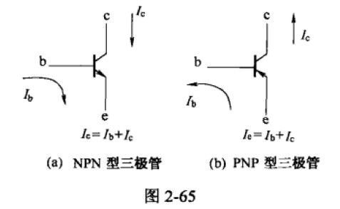 PNP型管工作時,集電極c和基極b接負極,電流由發(fā)射極e流向集電極c和基極b,其圖形符號中箭頭向里即表示了電流方向,如圖中2-65所示。