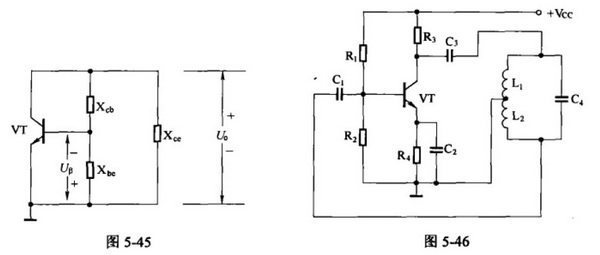三點(diǎn)式振蕩器是指晶體管的三個(gè)電極直接與振蕩回路的三個(gè)端點(diǎn)相連接而構(gòu)成的振動(dòng)器,如圖5-45所示。3個(gè)電抗中,必有有兩個(gè)相同性質(zhì)的電抗(同是電感或者電容),而另一個(gè)必須是與前兩者相反性質(zhì)的電抗,才能滿足振蕩的相應(yīng)條件。三點(diǎn)式振蕩器有很多種形式,較常用的有電感三點(diǎn)式振蕩器、電容三點(diǎn)式振蕩器、改進(jìn)型電容三點(diǎn)式振蕩器等。