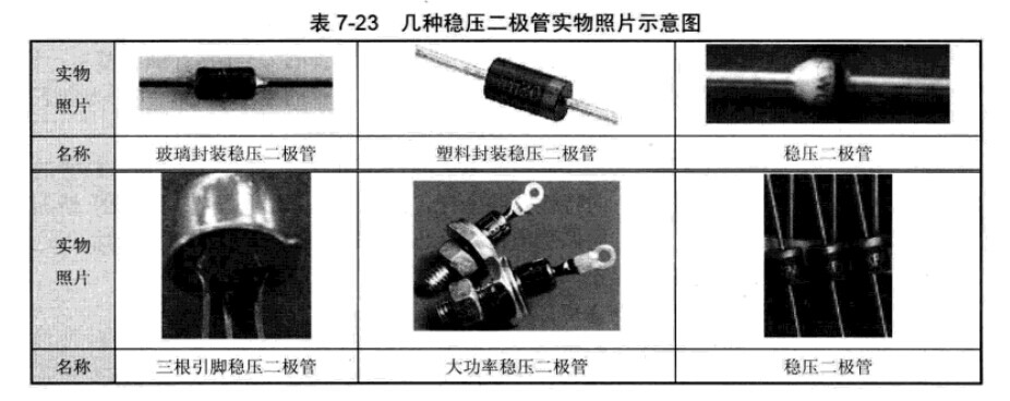 如表7-23所示是幾種穩(wěn)壓二極管實(shí)物照片示意圖。