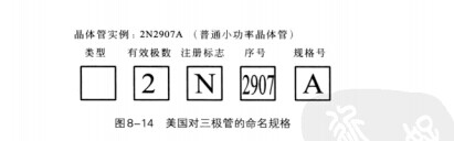 美國生產的晶體三極管的命名規(guī)格見圖8-14。