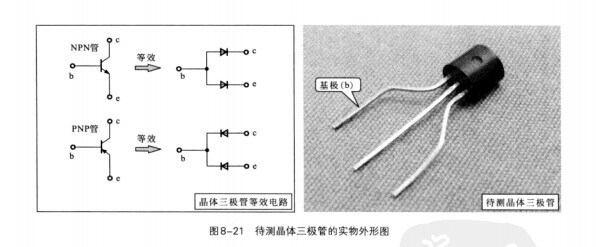 待測晶體三極管的實(shí)物外形見圖8-21所示。