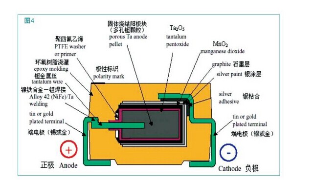 結成一多孔的堅實芯塊(圓柱形狀),芯塊經(jīng)過陽極化處理生成氧化膜TA2O5,再被覆固體電解質(zhì)MNO2,然后